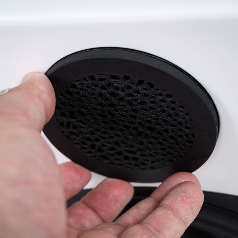The midbass driver is also sourced from SB Acoustics and features a specially developed paper cone that delivers beautifully articulated bass and natural-sounding midrange frequencies. It is housed in a rigid, non-resonant composite basket and includes optimized venting for excellent thermal management and dynamic performance. The result is a well-controlled, musical response across the lower and mid-frequency spectrum.